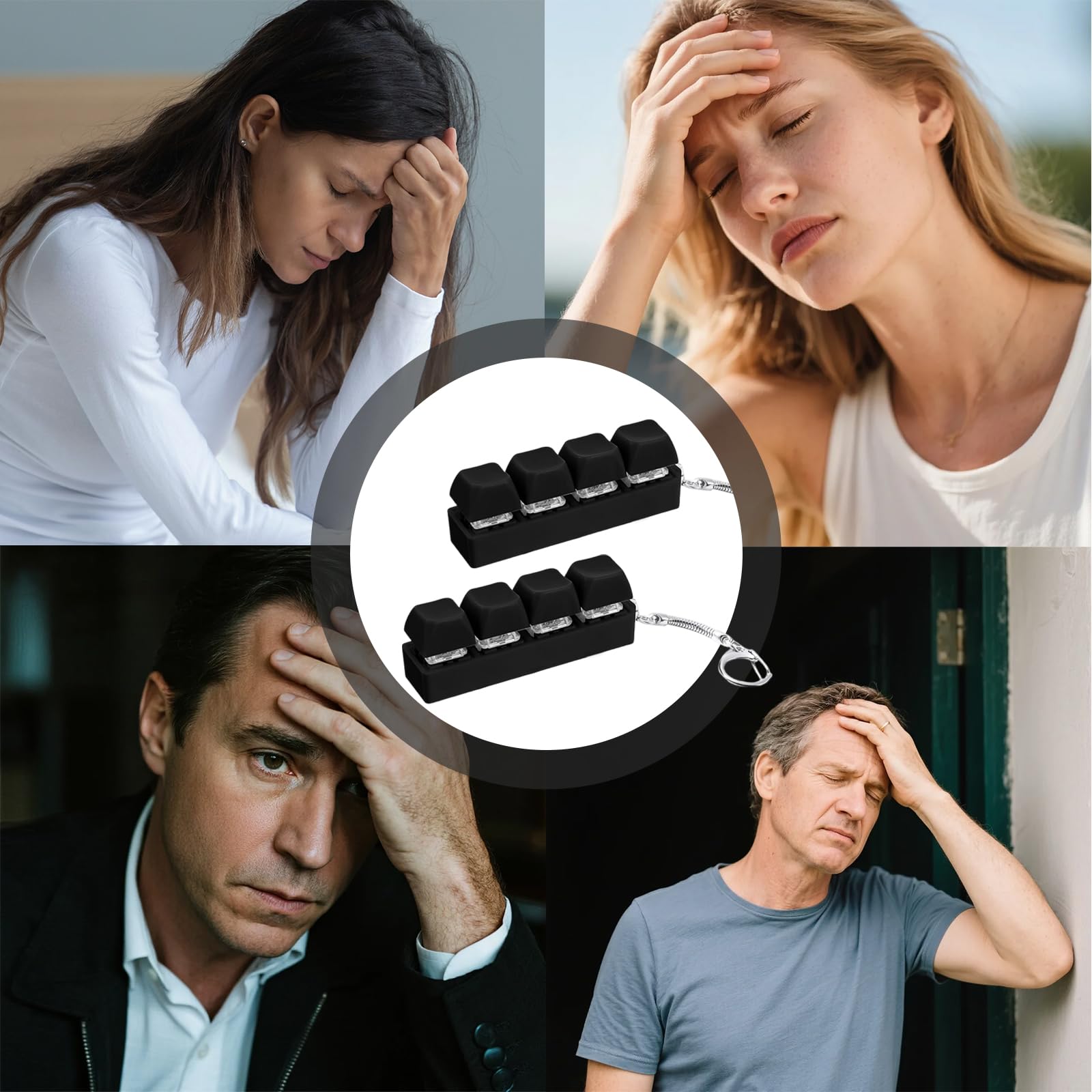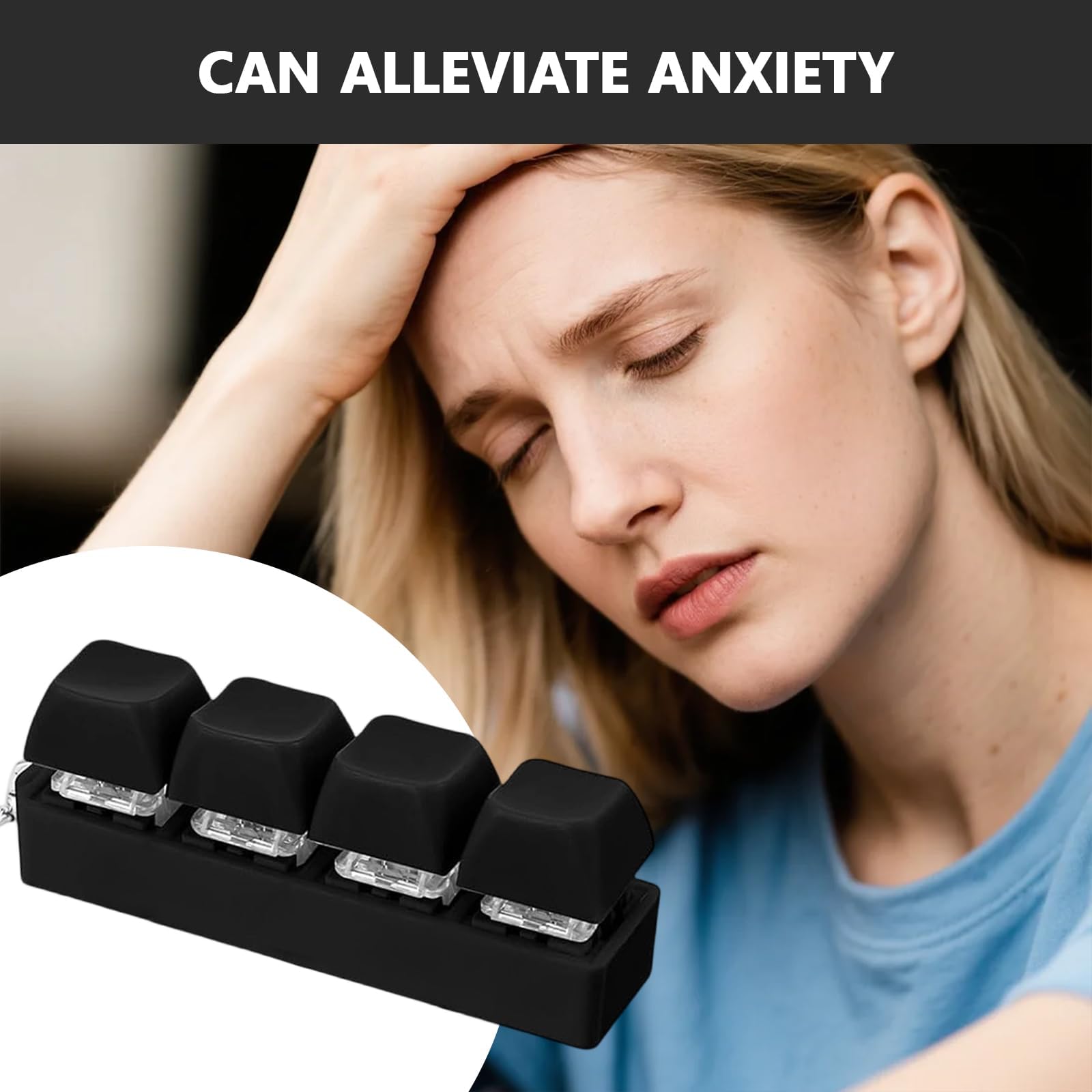 • Zappelspielzeug: Dies ist ein sehr stilvolles Zappelspielzeug mit Tastatur, das aus vier Knöpfen und einem Schlüsselbund besteht. Die Tasten erzeugen beim Drücken ein klares Klickgeräusch und die verschiedenfarbigen Tastenkappen können leicht entfernt und je nach persönlichem Geschmack neu angeordnet werden.