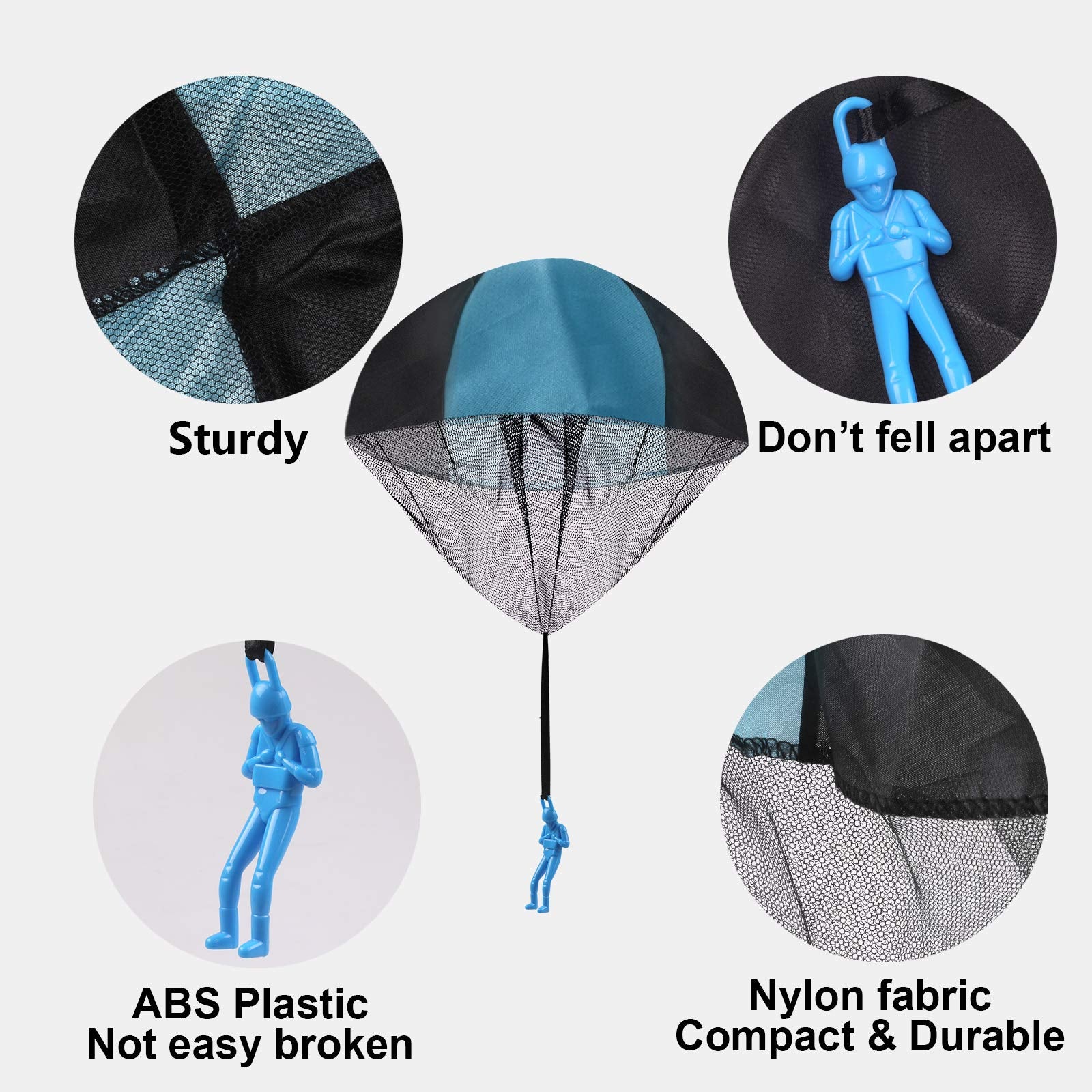 • 【Strapazierfähiges Material】 Die Schirme aus einer sondern sind aus Stoff und Polyester gefertigt. Die Figuren sind aus Kunststoff der keine Gerüche absondert. Die Fallschirmspringer halten sehr lange.